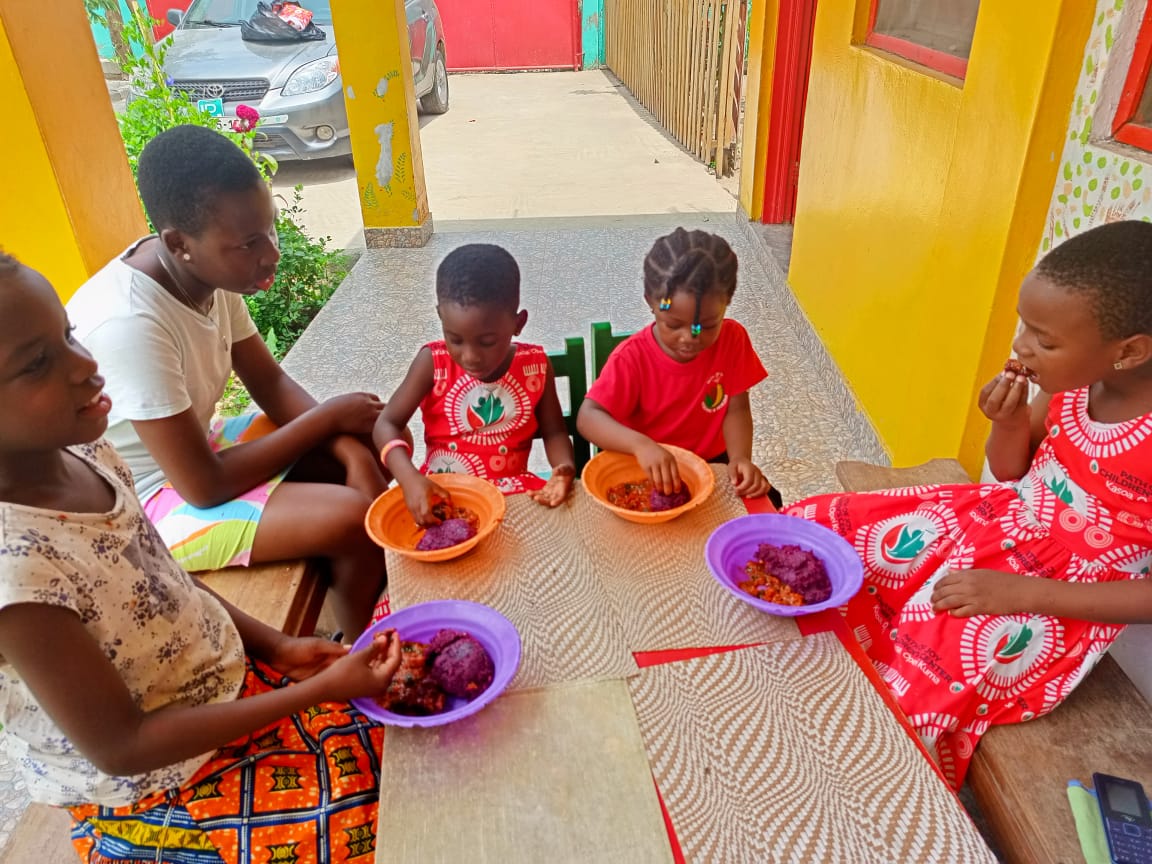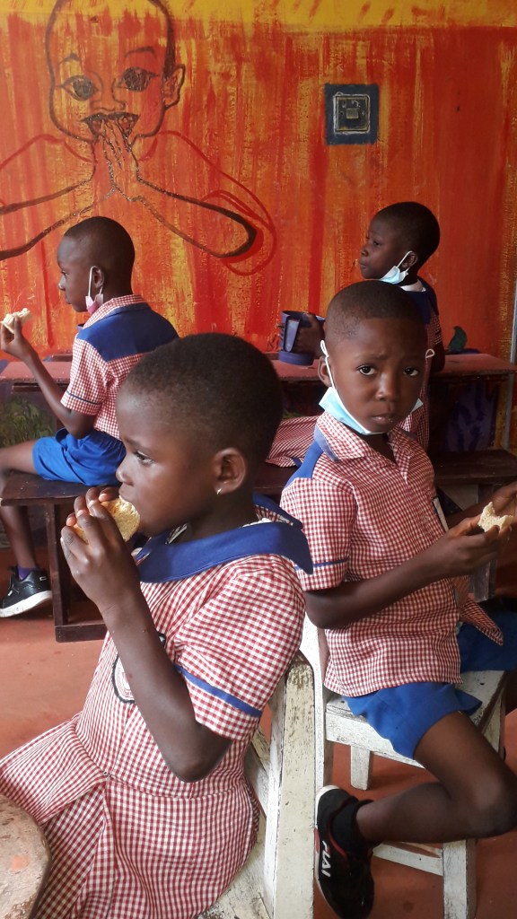 The appreciation for the local food: Ghanaian food is very nutritious –made of millet, plantain, brown rice, roots, groundnuts, maize, etc. Yet, many are replacing their traditional meals by the Western fast food. By feeding our pupils delicious local food, we are educating them and their parents to value it.