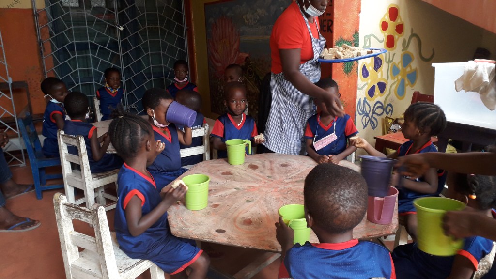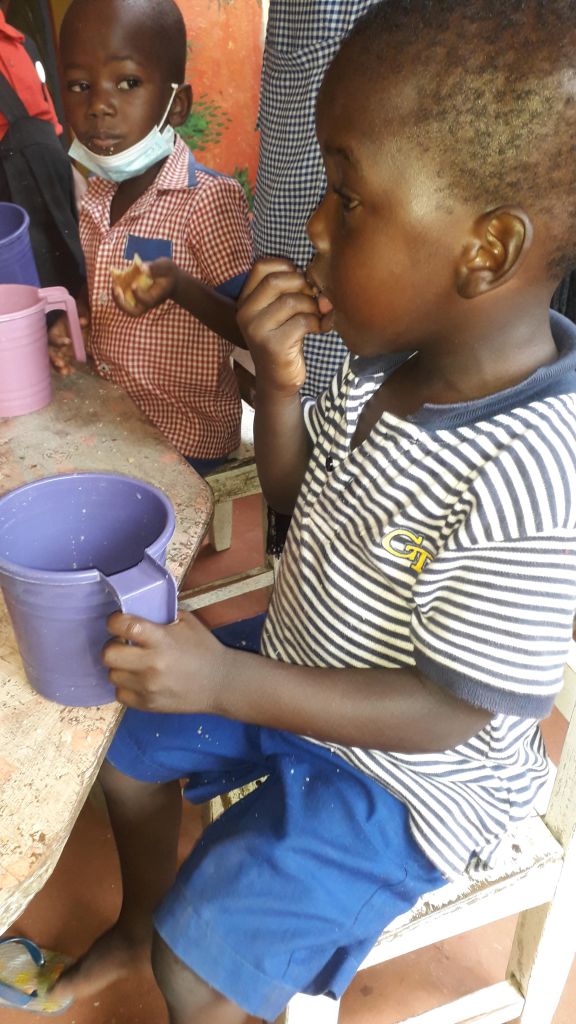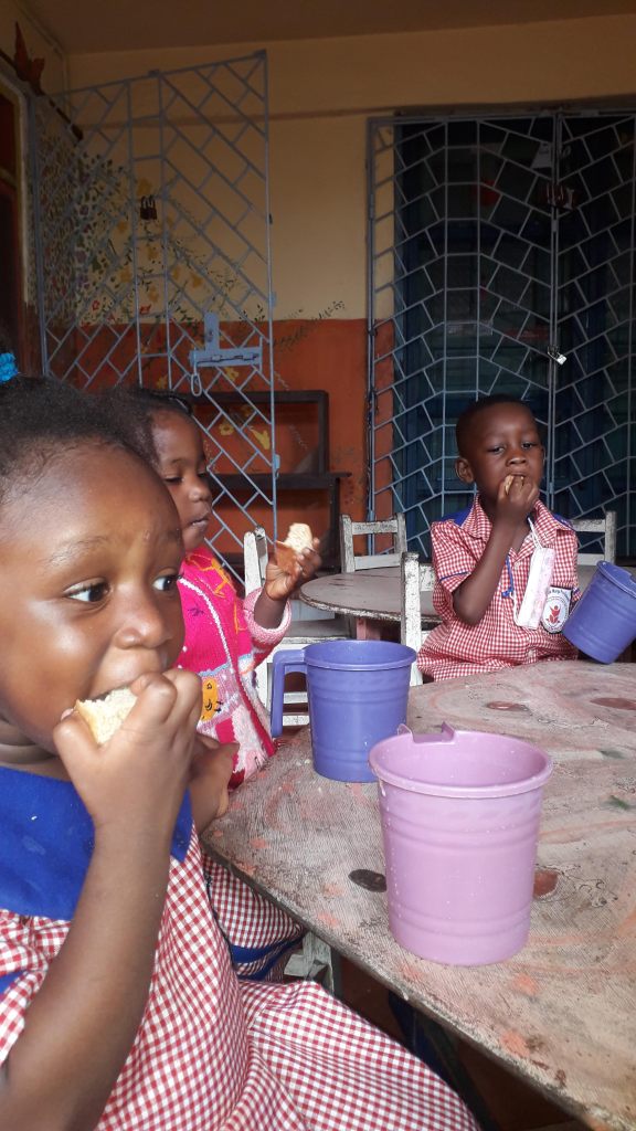 We are feeding the children every morning during the weekdays with meals made of local nutritious food.